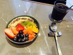バナナ・キウイ・いちご・ブルーベリーなどフルーツがたっぷりで、グラノーラとのバランスもよく満足感のある一杯でした。