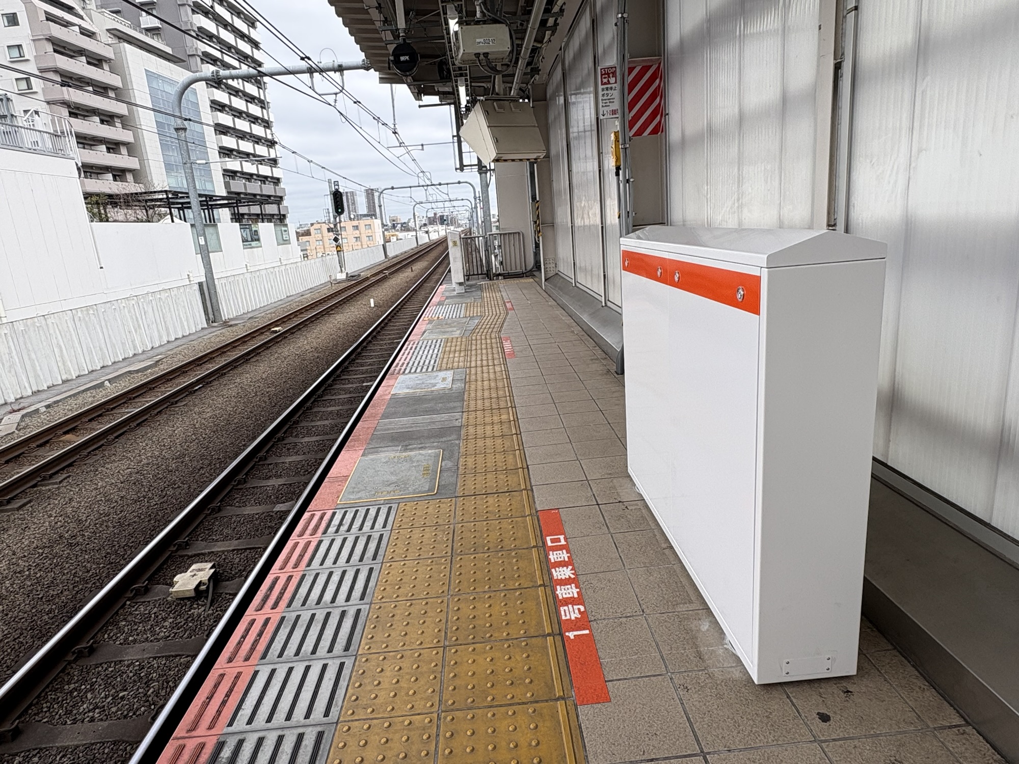 武蔵境駅の中央線ホームにて、ホーム端部付近に新たな機器が設置されているのを確認しました。