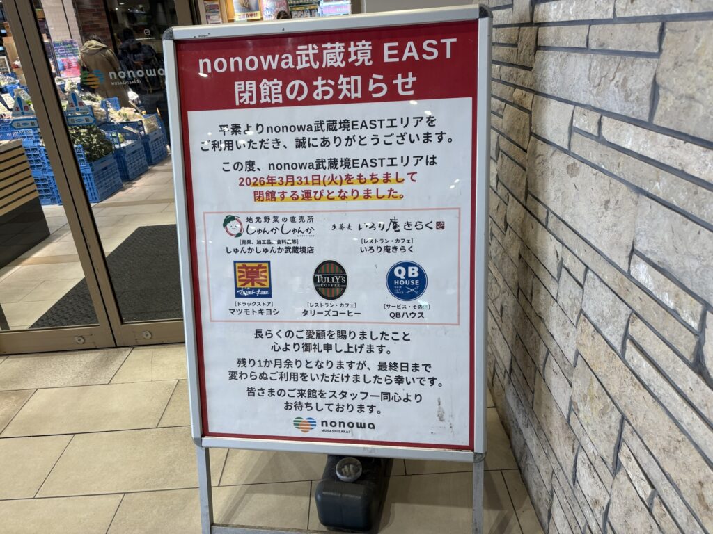 nonowa武蔵境EASTは閉館となるものの、